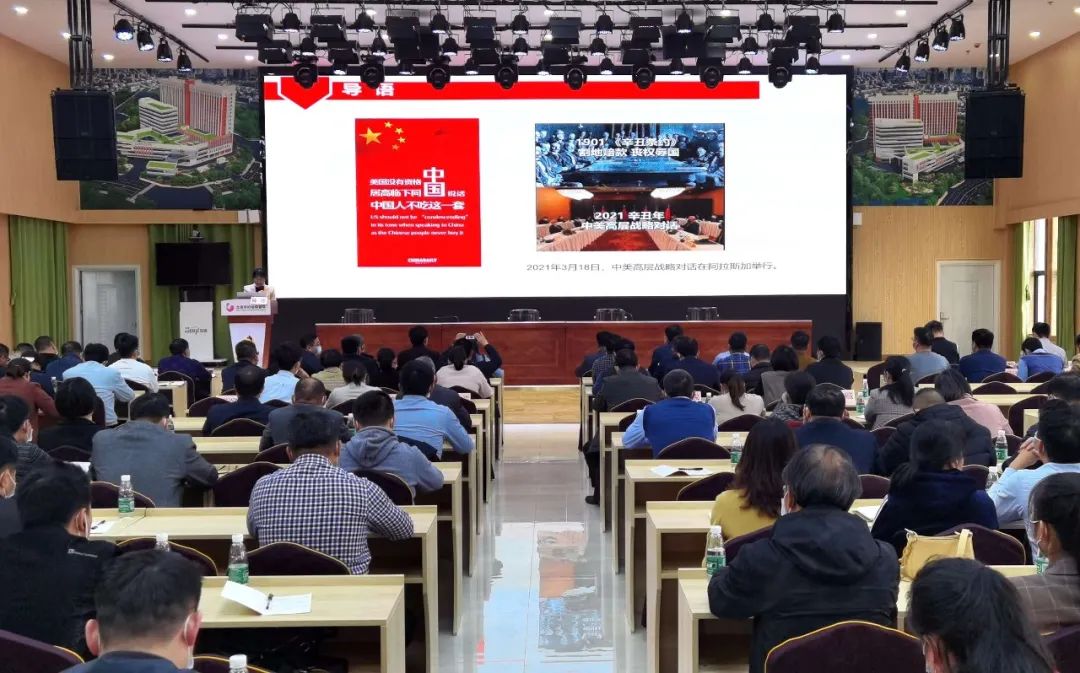 優(yōu)秀黨課講師在給北流(liu)市衛(wèi)生健康系統(tǒng)黨員干部上黨課(ke)