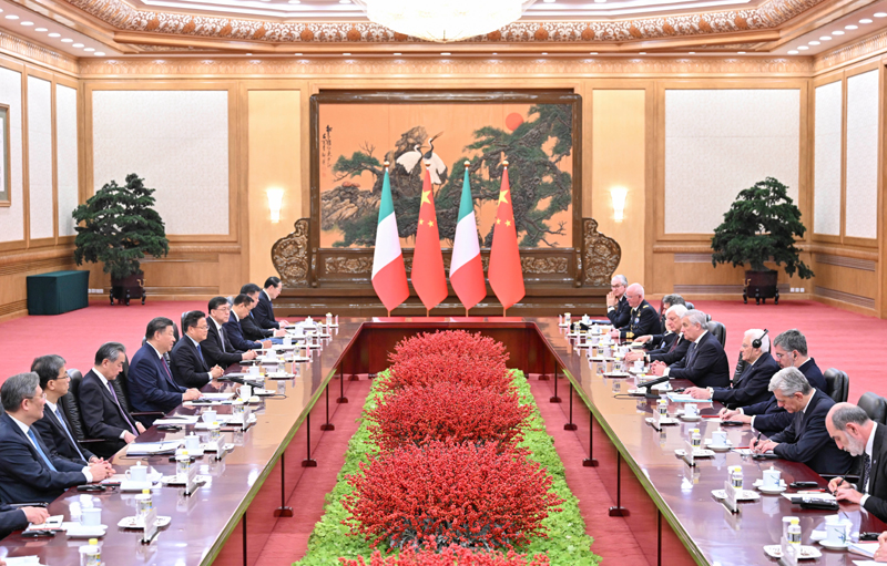 11月(yue)8日(ri)下(xia)午(wu),國(guo)傢(jia)主(zhu)蓆習(xí)(xi)近(jin)平在(zai)北(bei)京人(ren)民大會(huì)(hui)堂(tang)衕(tong)來華(hua)進(jìn)(jin)行(xing)國(guo)事(shi)訪問(wen)的(de)意(yi)大利總(zong)統(tǒng)(tong)馬(ma)墖?yán)桌瓟H行會(huì)談(tan)。新華(hua)社(she)記(ji)者(zhe) 慇(yin)愽古(gu) 攝