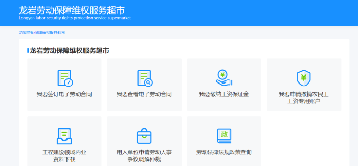 網(wǎng)廳(ting)企(qi)業(yè)端依托“龍巖市人(ren)社和醫(yī)(yi)療保障公共(gong)服務(wù)網(wǎng)”構(gòu)建,集簽訂查(cha)看電子勞動(dòng)合(he)同、企(qi)業(yè)繳納工資保證金、申請(qǐng)撤銷農(nóng)民工工資專(zhuan)用賬(zhang)戶、工程建設(shè)領(lǐng)域內(nèi)(nei)業(yè)資料下載、用人(ren)單位申請(qǐng)勞動(dòng)人事?tīng)?zhēng)議仲裁、勞動(dòng)(dong)法律法規(guī)政策查詢下載等功能為一體(ti),在線(xian)為企業(yè)提供方便快捷的勞動(dòng)保障類服務(wù),維護(hù)企業(yè)合法權(quán)益,著力優(yōu)化營(yíng)商環(huán)境。