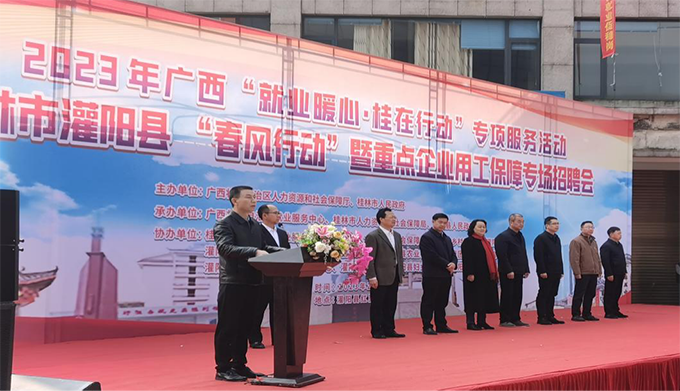為落實(shí)中央和自治區(qū)就業(yè)優(yōu)先戰(zhàn)略,集中幫扶農(nóng)民工(gong)、就業(yè)困(kun)難人員等勞動(dong)者就業(yè)創(chuàng)業(yè),助力鄉(xiāng)村(cun)振興向縱深推進(jìn),2月27日,廣西壯族自治區(qū)、桂(gui)林市、灌陽縣三級聯(lián)動在灌陽縣紅豆杉廣(guang)場聯(lián)合舉辦2023年廣(guang)西(xi)“就業(yè)暖心·桂在行動”專(zhuan)項(xiàng)服務(wù)活動、桂林市灌陽縣(xian)“春風(fēng)行動(dong)”暨(ji)重點(diǎn)企業(yè)用工保(bao)障專場招聘會(hui)。