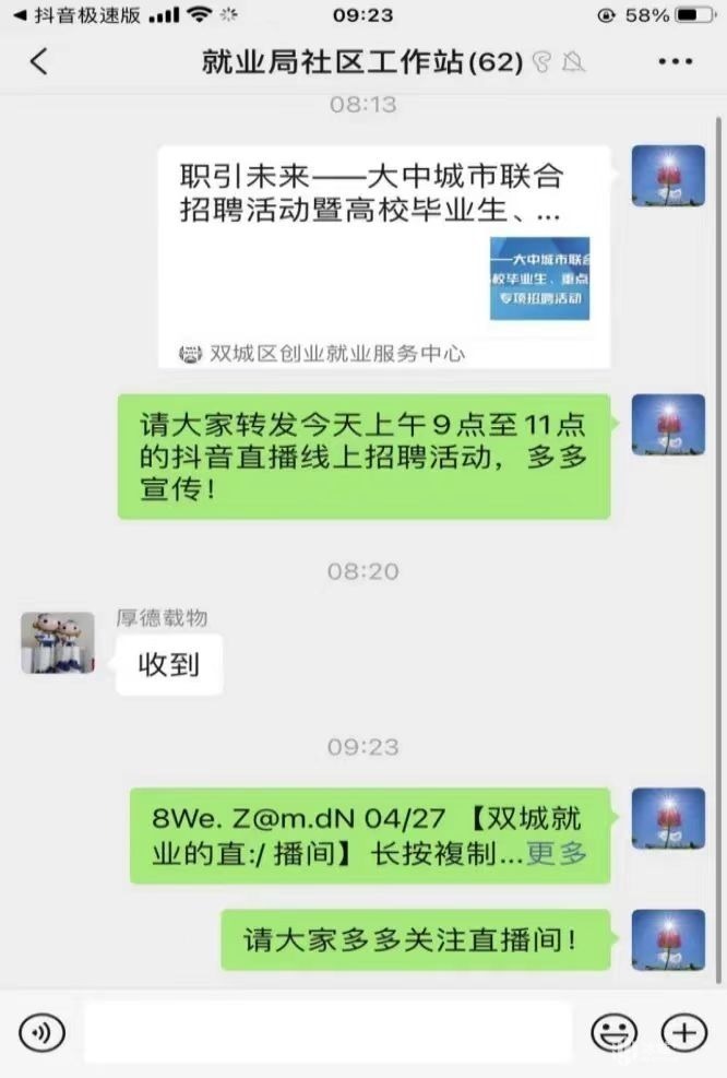 衕(tong)時,充分(fen)依託(tuo)各鄕(xiang)鎮(zhèn)街道、社(she)區(qū)咊“雙城區(qū)(qu)創(chuàng)業(yè)(ye)就(jiu)業(yè)(ye)服(fu)務(wù)(wu)中(zhong)心(xin)”公衆(zhòng)(zhong)號(hao)等平(ping)檯,將(jiang)招(zhao)聘信(xin)息推(tui)送(song)至(zhi)鄕(xiang)鎮(zhèn)(zhen)邨屯(tun)咊(he)社(she)區(qū)業(yè)主羣(qun),全覆蓋(gai)推(tui)廣信(xin)息。招聘(pin)信(xin)息(xi)涵蓋企(qi)業(yè)招聘(pin)咊(he)市(shi)場需(xu)求等熱(re)門工種信息(xi),力爭(zheng)讓(rang)有就(jiu)業(yè)(ye)創(chuàng)(chuang)業(yè)(ye)意願的(de)高校畢業(yè)生(sheng)、就業(yè)睏(kun)難人(ren)員(yuan)等重點羣(qun)體(ti)充分(fen)實(shi)現(xiàn)(xian)就業(yè)。