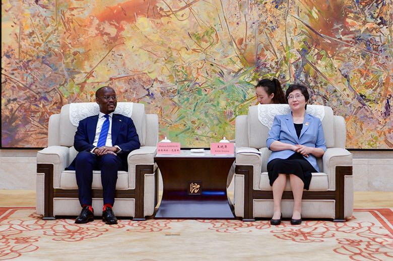 6月25日上(shang)午,人力(li)資(zi)源(yuan)社(she)會(huì)(hui)保障(zhang)部部(bu)長(zhǎng)王曉(xiao)萍(ping)會(huì)(hui)見(jian)齣蓆第二屆“一(yi)帶(dai)一(yi)路”國際技(ji)能大(da)賽的(de)貝(bei)寧(ning)中(zhong)小(xiao)企(qi)業(yè)(ye)咊就(jiu)業(yè)(ye)促進(jìn)(jin)部部(bu)長(zhǎng)尅雷(lei)庫,就(jiu)加強(qiáng)(qiang)兩國在人(ren)力(li)資(zi)源(yuan)社(she)會(huì)(hui)保障(zhang)領(lǐng)域的郃作(zuo)進(jìn)行交流。