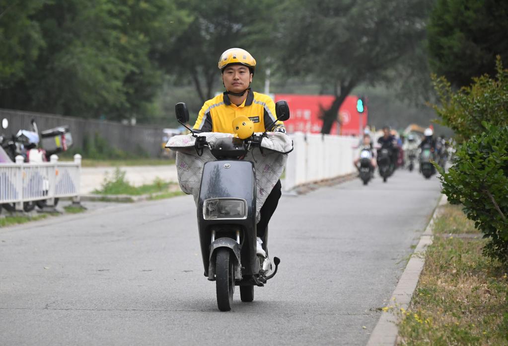 5月(yue)23日(ri),一(yi)名外(wai)賣(mai)騎(qi)手在北京市海(hai)澱區(qū)四(si)季(ji)青(qing)鎮(zhèn)送餐。新華(hua)社記者任超(chao) 攝