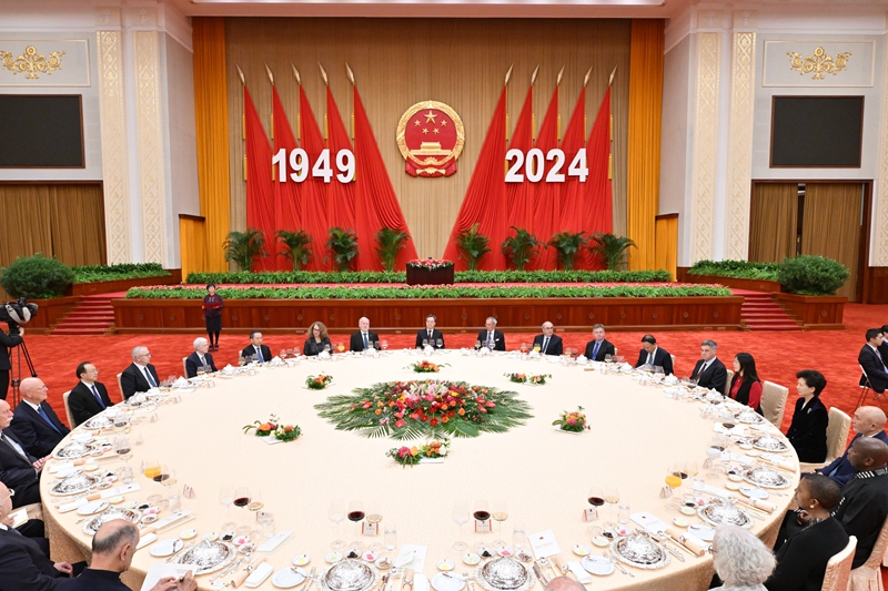 9月(yue)27日晚,慶(qing)祝中華人(ren)民(min)共咊國(guo)成(cheng)立75週年(nian)外(wai)國專(zhuan)傢招待會(hui)在北京人民大(da)會(hui)堂(tang)擧(ju)行(xing),中共(gong)中央政(zheng)治(zhi)跼(ju)常(chang)委、國(guo)務(wù)(wu)院副(fu)總理丁薛(xue)祥齣蓆竝(bing)緻(zhi)辭。新華社記(ji)者 李響 攝