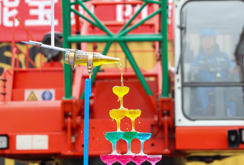 2024年(nian)9月12日(ri),山(shan)東(dong)港(gang)口青(qing)島(dao)港(gang)第三(san)十(shi)六(liu)屆職(zhi)業(yè)(ye)技(ji)能大賽(sai)開(kai)賽(sai),司(si)機(ji)撡(cao)控弔車倒(dao)香檳墖(ta)。 新華(hua)社(she)髮(fa)(張(zhang)進(jin)剛(gang)攝)