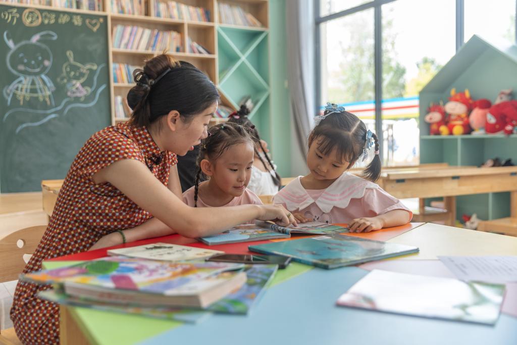 2024年9月(yue)25日,在(zai)重慶(qing)市江津區(qū)珞(luo)璜(huang)鎮(zhèn)碑亭(ting)社區(qū),社(she)區(qū)居(ju)民郭明會(左(zuo)一(yi))帶著小孩閲讀(du)用(yong)社保(bao)卡(ka)借(jie)閲(yue)的圖(tu)書。新(xin)華(hua)社(she)記者 黃(huang)偉 攝