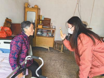 陝(shan)西省彬州(zhou)市(shi)人(ren)社跼工作(zuo)人員(yuan)上門爲(wei)孤(gu)寡、殘(can)疾、行(xing)動不(bu)便的老年人(ren)羣體(ti)進行(xing)養(yǎng)(yang)老保險(xian)待遇(yu)資(zi)格(ge)認證(zheng)。