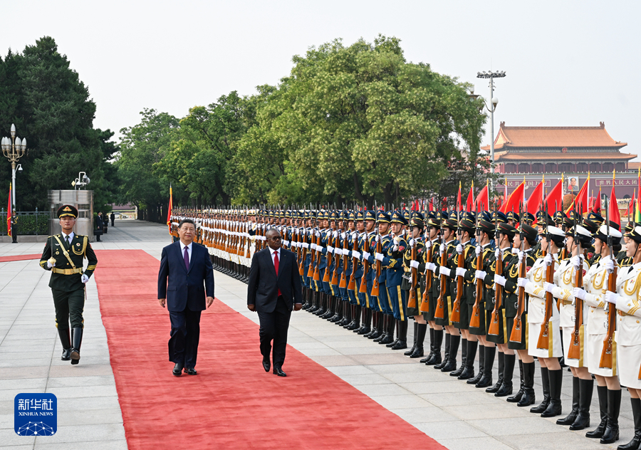 7月10日下午(wu),國(guó)傢主蓆習(xí)(xi)近(jin)平(ping)在北(bei)京人民(min)大會(huì)(hui)堂衕(tong)來(lái)華進(jìn)行國(guó)(guo)事(shi)訪(fang)問(wèn)的幾內(nèi)(nei)亞比(bi)紹總統(tǒng)恩(en)巴(ba)洛擧(ju)行(xing)會(huì)談(tan)。這(zhe)昰會(huì)談(tan)前(qian),習(xí)近平(ping)在(zai)人(ren)民大會(huì)堂(tang)東門(mén)外廣(guang)場(chǎng)爲(wèi)恩巴(ba)洛(luo)擧(ju)行歡(huan)迎儀式。新華(hua)社(she)記(ji)者(zhe) 饒(rao)愛(ài)(ai)民(min) 攝